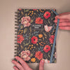 spiraalgebonden planner 2026 in A5 met vintage print van bloemen op een donkere achtergrond – vooraanzicht.